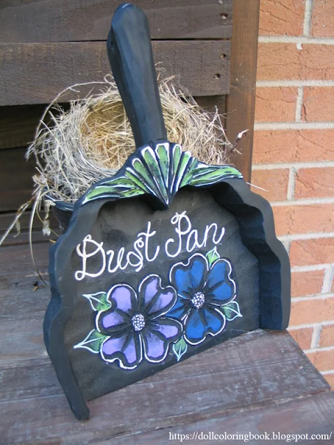 | The finished dust pan painted to look like chalk work. |