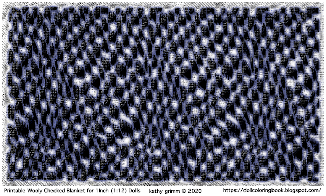 Click directly on the images to download the correct size, the size you see on your page browser is smaller than the original seen in the slide show viewer. These faux blanket printables are made for 1" doll scale, however, you may shrink them to fit smaller doll blanket versions if you like. There are two wooly cover versions here: one in a red, black and white checks and the other in blue, black and white checked print. I made these coverlets (printables) specifically for printing on fabric.